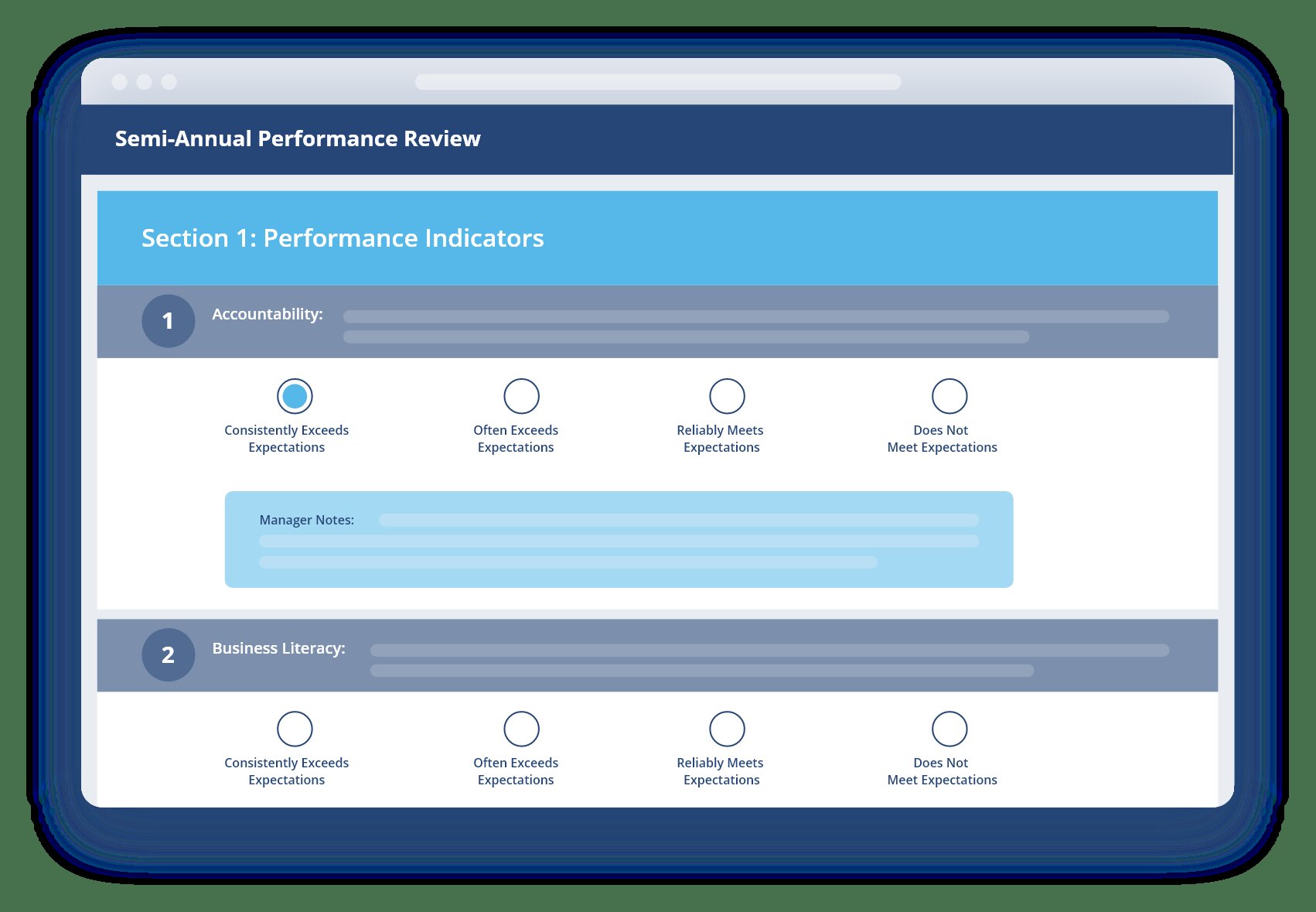 Review participants can track goal progress, revisit peer recognition, and access private coaching notes on mobile or desktop. Real-time analytics let managers slice performance data by cycle, department, or role to spot trends and inform talent decisions.