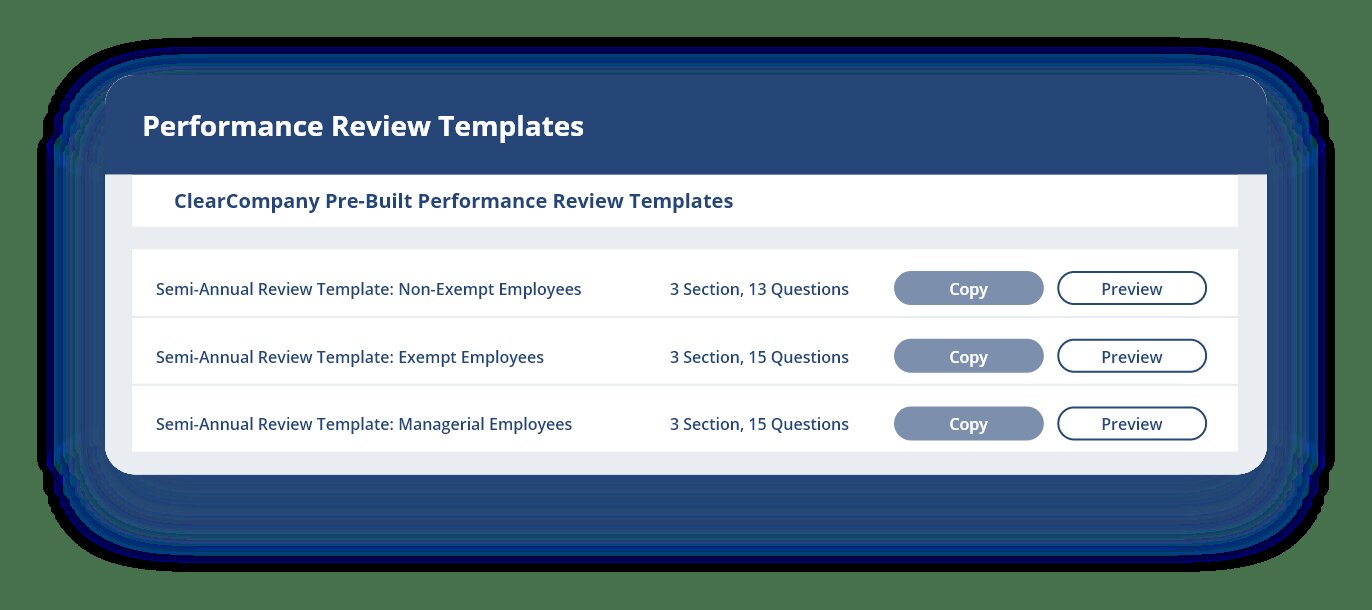 ClearCompany’s performance module offers flexible review cycles: annual, quarterly, 30/60/90-day, or custom formats. It supports 360° feedback, continuous check-ins, and competency-based assessments.