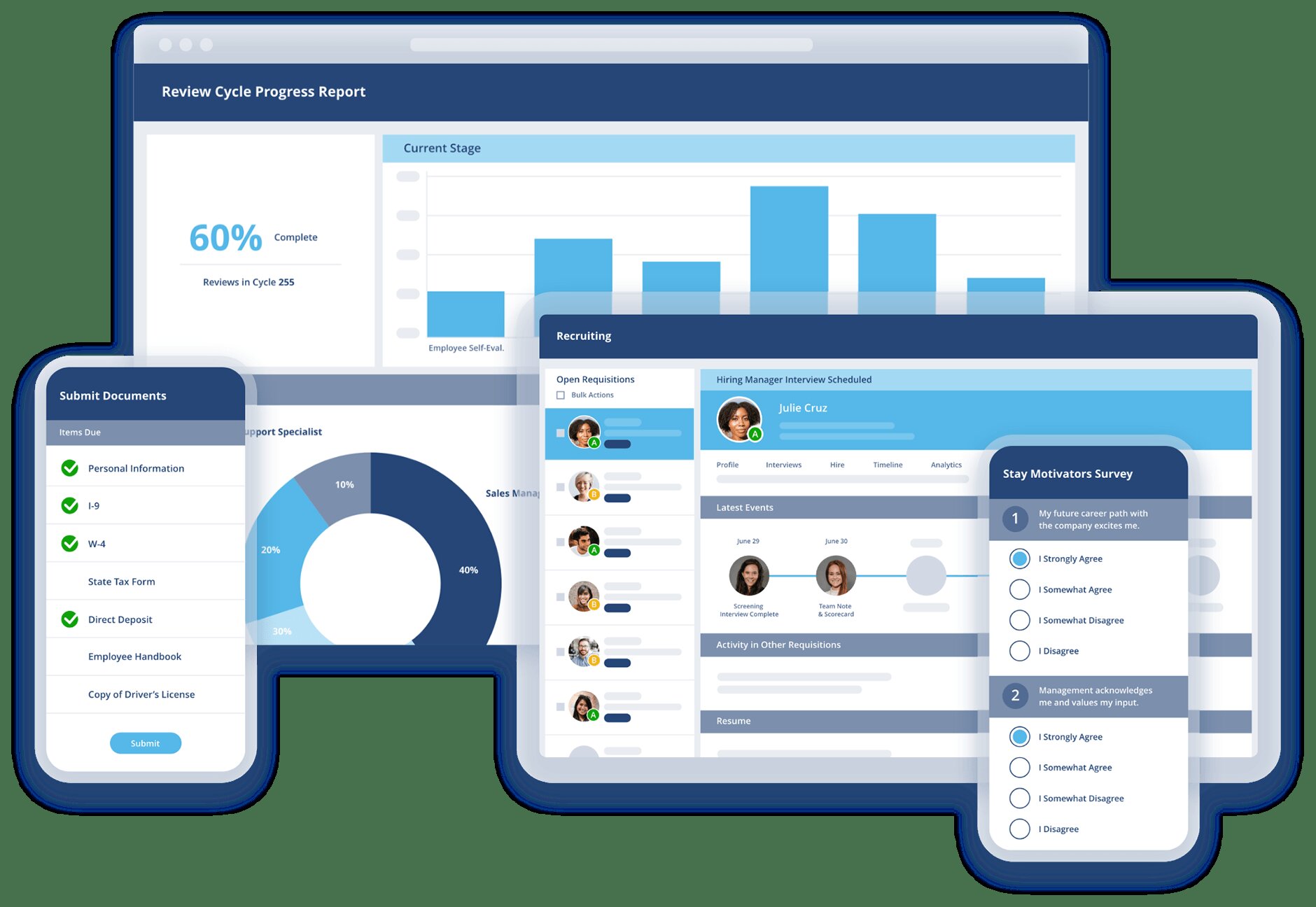 This connected approach ensures hiring data flows seamlessly into goal setting and professional development programs, unlike standalone talent modules that operate in silos.