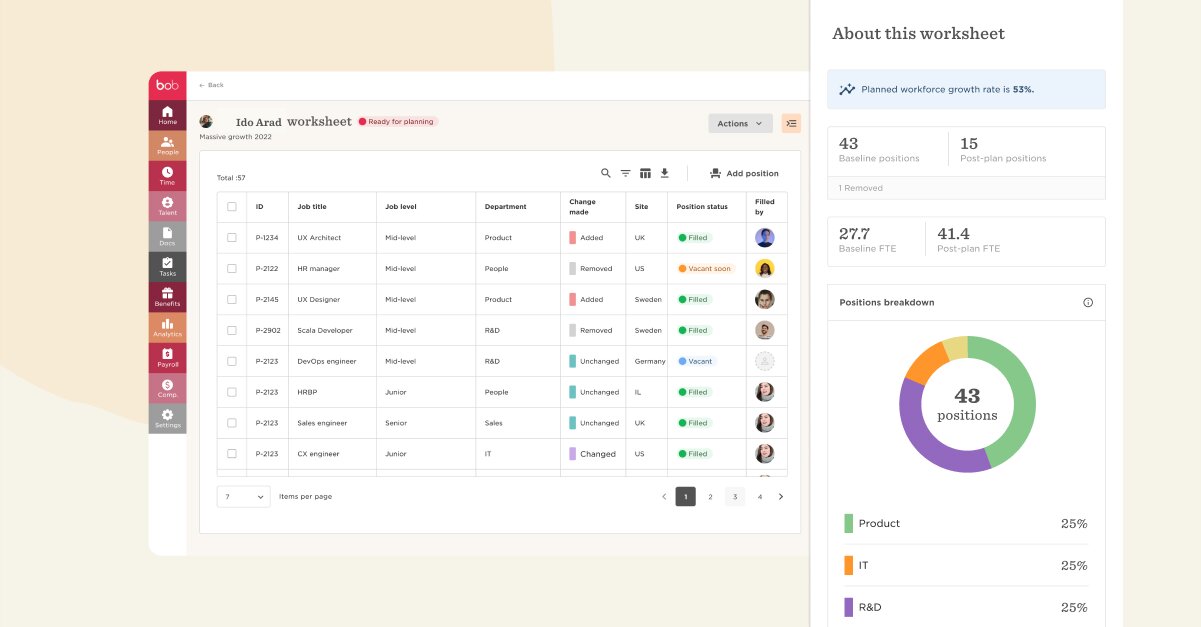 HiBob is a modern Human Resources Information System (HRIS) designed to streamline HR processes and enhance employee engagement for businesses of varying sizes. Its intuitive interface and extensive feature set make it a versatile solution for managing core HR functions, talent development, and organizational culture.