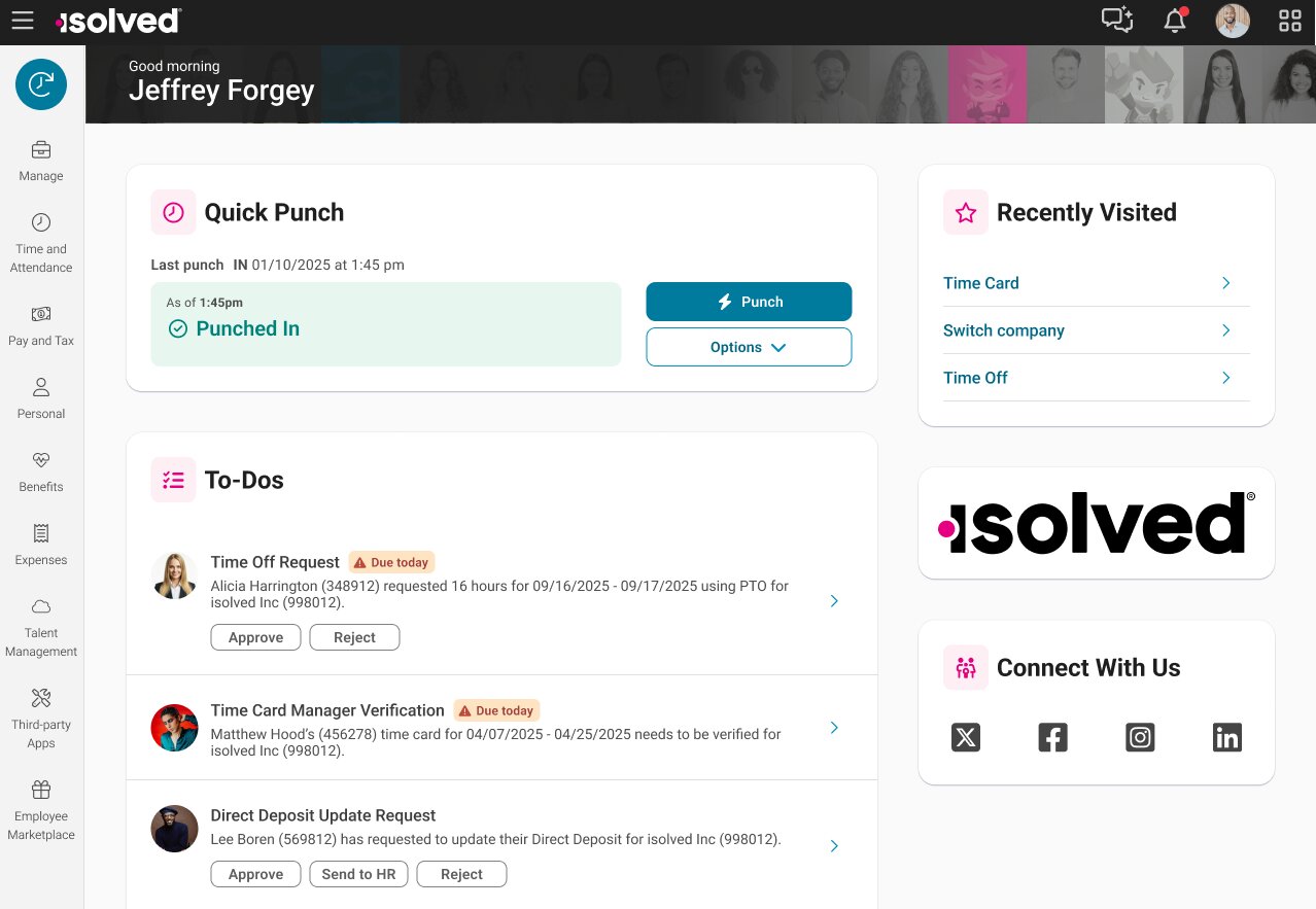 Designed for small to midsize businesses across industries such as healthcare, manufacturing, and hospitality, isolved provides an end‑to‑end solution to automate core processes and deliver insights that help organizations manage the entire employee lifecycle efficiently.