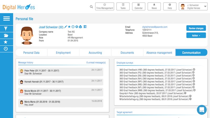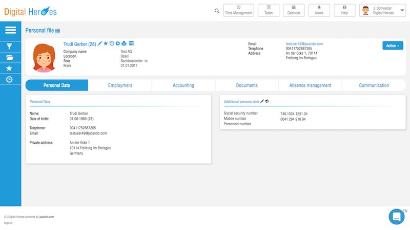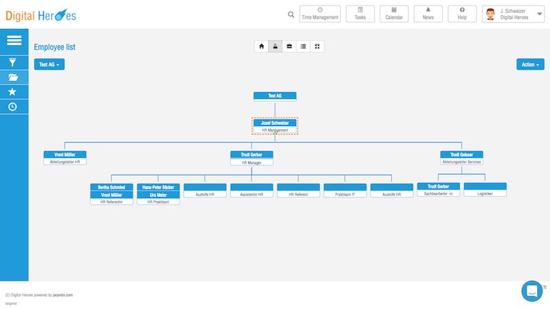 With Jacando Admin, the management of employees is always under control. Organizational charts and employee lists help you keep your employees in sight. Thanks to the interactive employee file, you can always access individual employees and find all relevant information and documents at a glance.