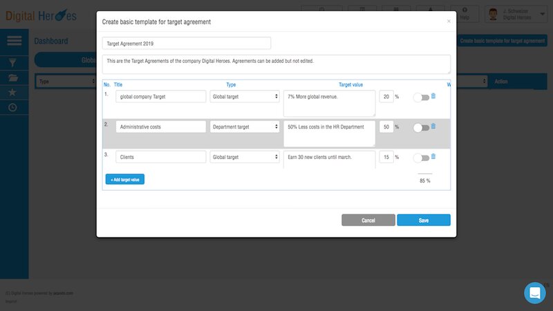 Get to know your employees through Jacando Talent. Thanks to the employee survey, you are always up to date with regard to satisfaction and many other topics. The target agreement feature allows you to set goals for your employees and easily measure their achievements. Employee tags (eg, experience, soft skills, etc.) are used to create a detailed fine-tuning for each employee profile.