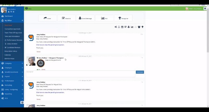 Rather than a suite of integrated modules, PeopleGuru provides clients with an extensive hire-to-retire solution. As well as more standard functionalities like onboarding, employee self-service, and benefits management, the HR software also offers fully integrated payroll management and social HR features.