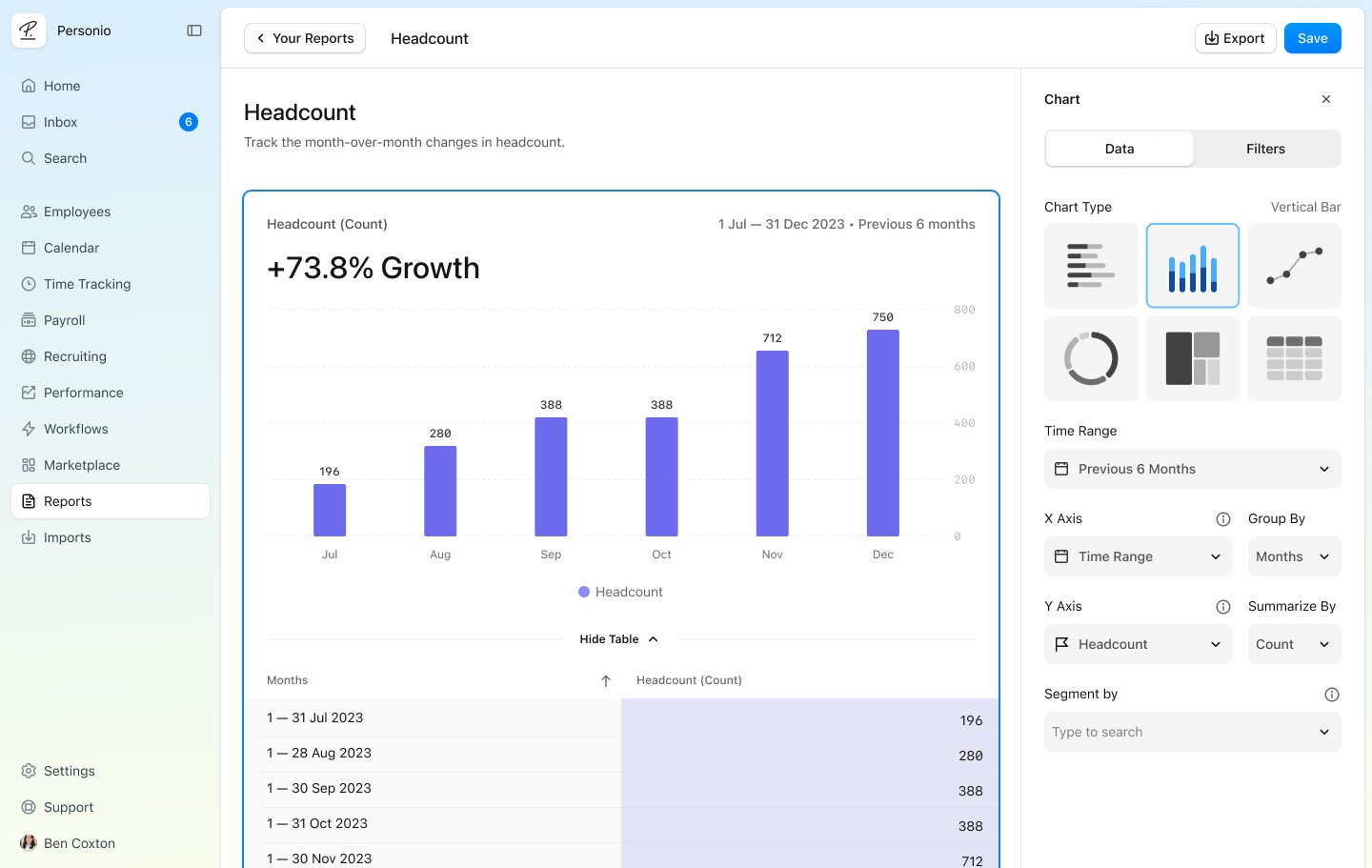 Personio adopts a subscription-based model with rates that vary according to headcount and chosen feature set. Pricing comprises: