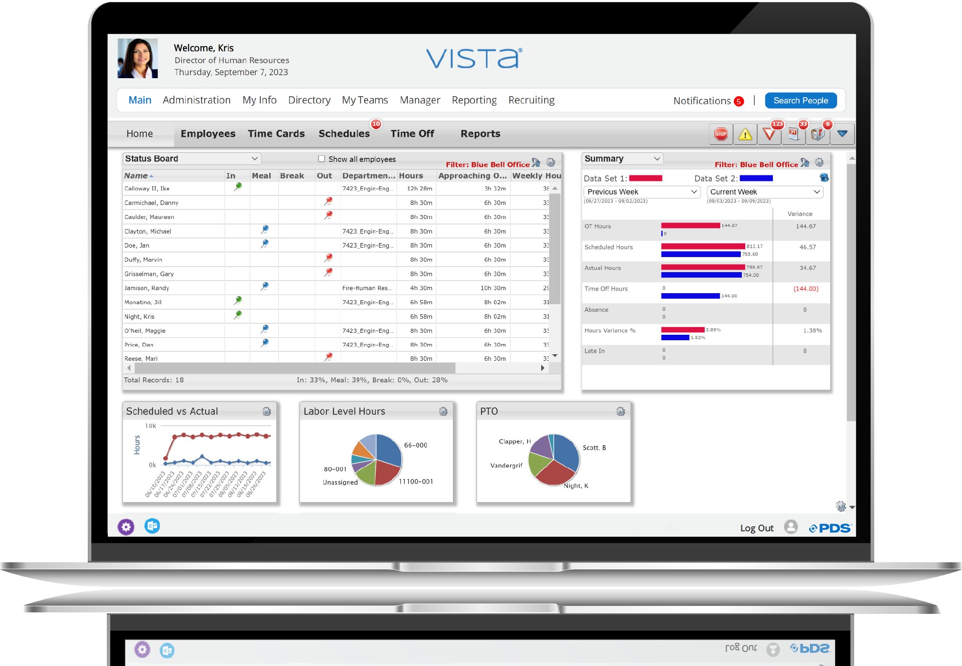 PDS’ Vista is the complete HCM software solution for organizations with employees based in the United States, Canada, or the Caribbean. All the pieces—recruiting, onboarding, human resources, benefits, payroll, time and attendance, self-service, workflow, analytics, mobile and extensive reporting—come together to simplify business practices and processes. Whether you opt for Vista in the cloud or on-premise, PDS' Vista delivers the operations management tools that companies need to monitor and securely manage their HCM environment.