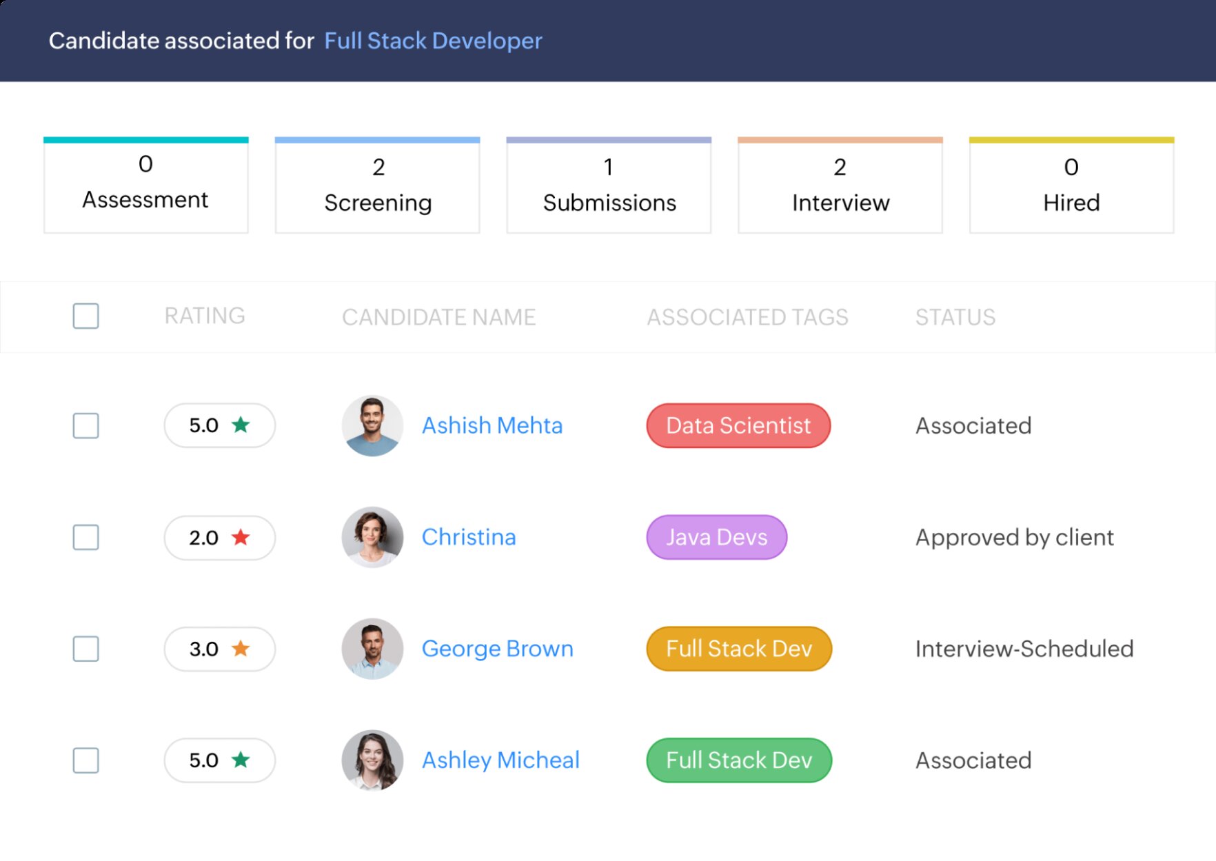 ZohoZoho Recruit is a web-based applicant tracking system (ATS) that helps in-house HR teams and staffing agencies streaml... View profile