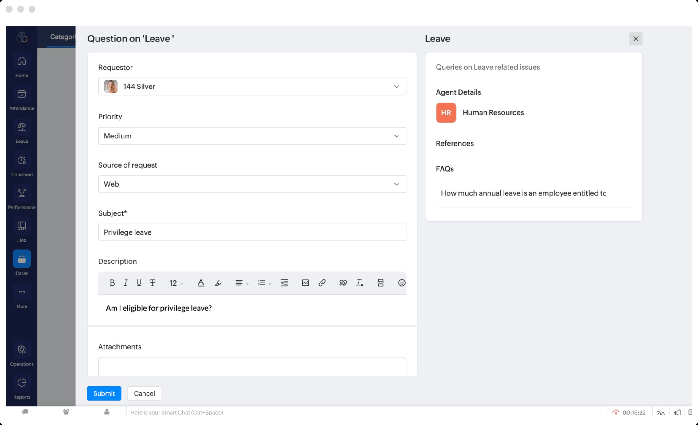 With the Zoho People app, both employees and managers have access to a mobile self-service portal that simplifies HR tasks, such as: